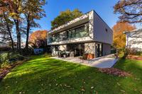 Das Haus hat als Architektonische Besonderheit Loggien über die gesamte Breite von 14 Metern. Dahinter bildet die raumhohe Verglasung den Übergang der Wohnräume zur Natur, die von der Hanglage und dem wunderbaren Ausblick in das Hengstbachtal geprägt ist.